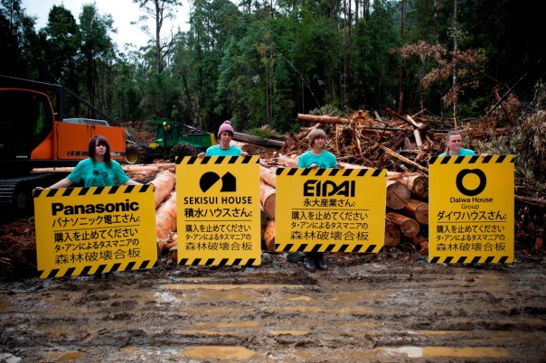 Wow! What an exciting day! Today marks the beginning of an awesome and hard-hitting campaign targeted towards the Japanese companies buying wood from Ta Ann that has come Tasmania’s high conservation value forests.  90% of the Ta Ann group’s plywood is being sold to Japanese companies, including Panasonic, Daiwa House, Sekisui House and Eidai.