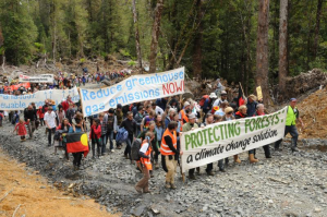 My action alone will not save the forest. That is just not how it goes. I really need you. Maybe I even need you to be MY hero! Because without you we cannot save this forest. It’s not that I don’t believe that the actions of one person can make a difference, otherwise I wouldn’t be sitting up here, right? But I think that the way it can make a difference is to inspire others so that together we can create change. I think this is how it is always throughout history. But it is often not how history is told. Somehow in the retelling the stories always change. The history books become filled with “heroes.”  The tale of David vs. Goliath gets repeated over and over again. I can’t know whether the story of David and Goliath is true. But I do know this much… it is very difficult when you are one person small and alone trying to fight off something that is much bigger than you (for example… the logging industry) and it would be much easier to fight if there were lots of Davids (so to speak) working together. For every story in history of a hero, an idol, a leader who changed the world…there is the unwritten story of many many people who took action, many people without whom that change would never have come about.