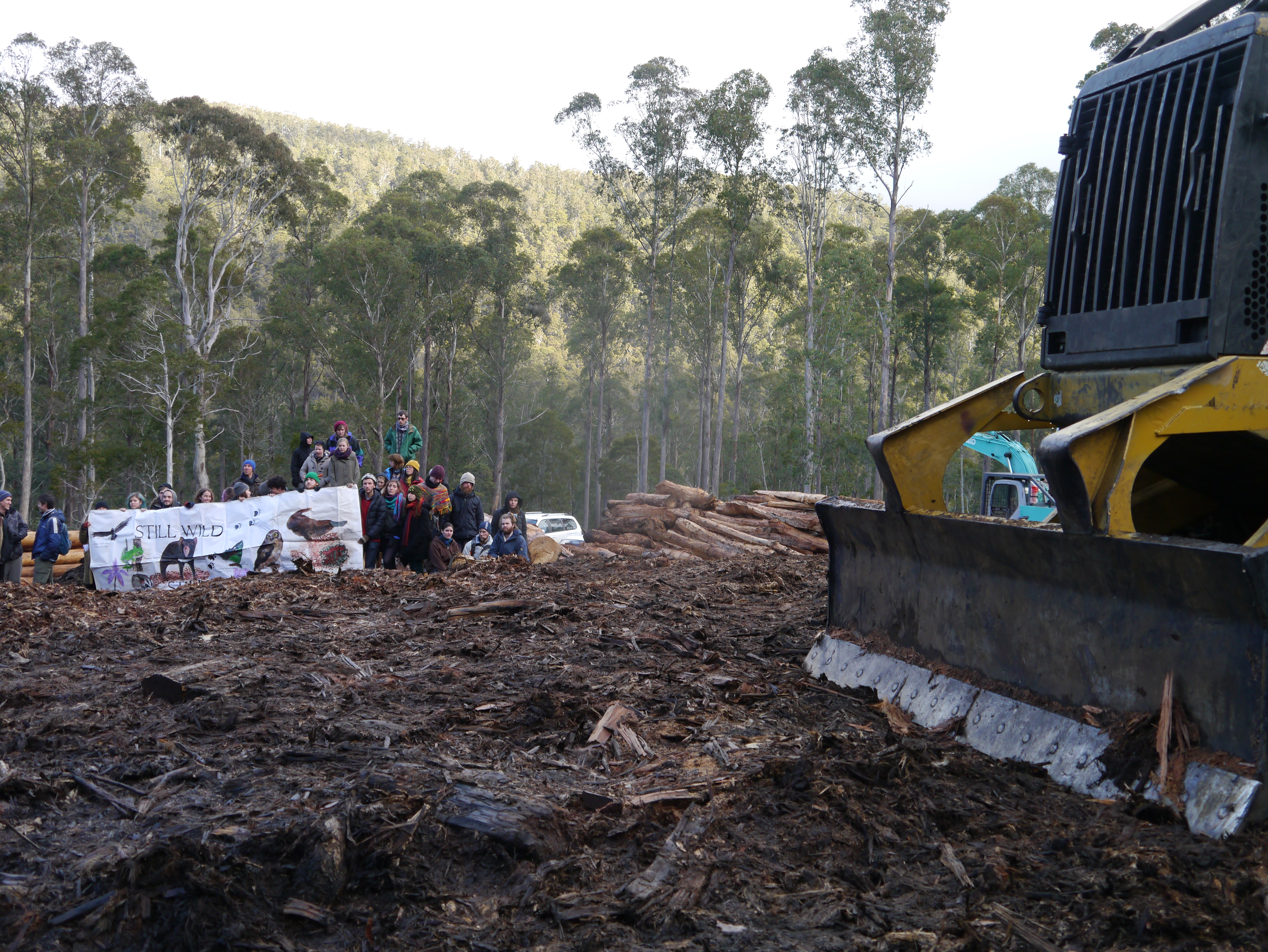 Still Wild Still Threatened spokeswoman Miranda Gibson stated, “The forests of Fisher Tier, including N111G where today’s peaceful protest is being conducted, have been identified by the IVG as being extremely important for ecological connectivity in North-eastern Tasmania. This forest, like many others, was sacrificed to satisfy the unsustainable, loss-generating native forest industry.”